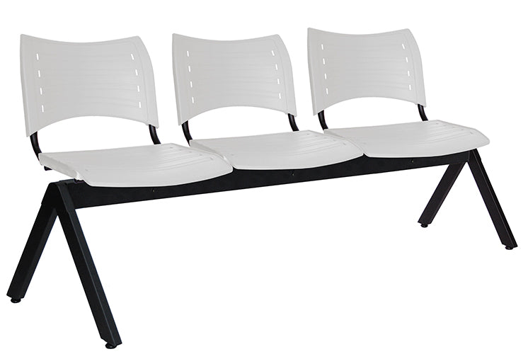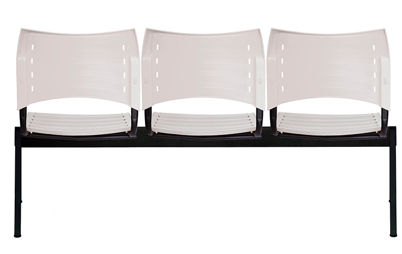 Banca con estructura de acero tubular rectangular de 1 1/2" X 3", calibre 16, asientos y respaldos de perfil ovalado tubular de acero con travesaños separadores tubulares redondos de acero con acabado de pintura epóxica (electrostática) color negro mate. Patas de acero tubular redondo de 1 1/2" de diámetro, calibre 16; contiene niveladores. Terminado en cromo.