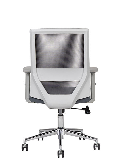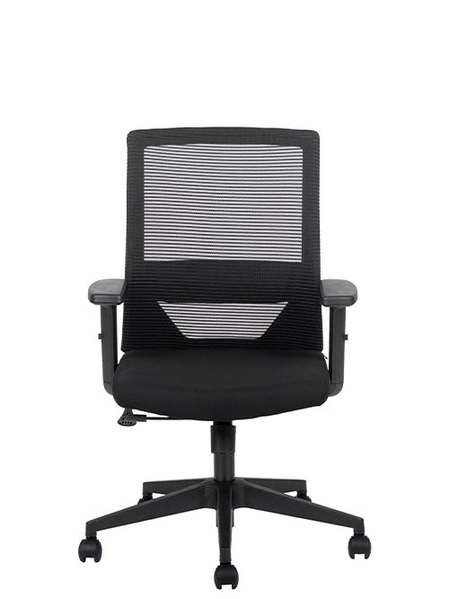 Silla semi ejecutiva con respaldo bajo, mecanismo reclinable con regulación de tensión. soporte lumbar fijo, descansabrazos con ajuste de altura y 2 posiciones de bloqueo. Acojinamiento en asiento de poliuretano inyectado.