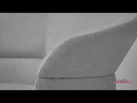 Con cuerpo de poliuretano flexible inyectado con inserto de metal para la sujeción de su base. Con base de madera de haya en color negro y tela de importación.